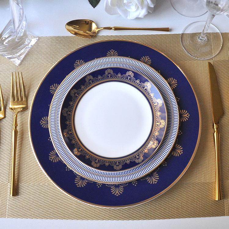 Gold rimmed bone china dinner plates blue dish set Bone China Maintenance