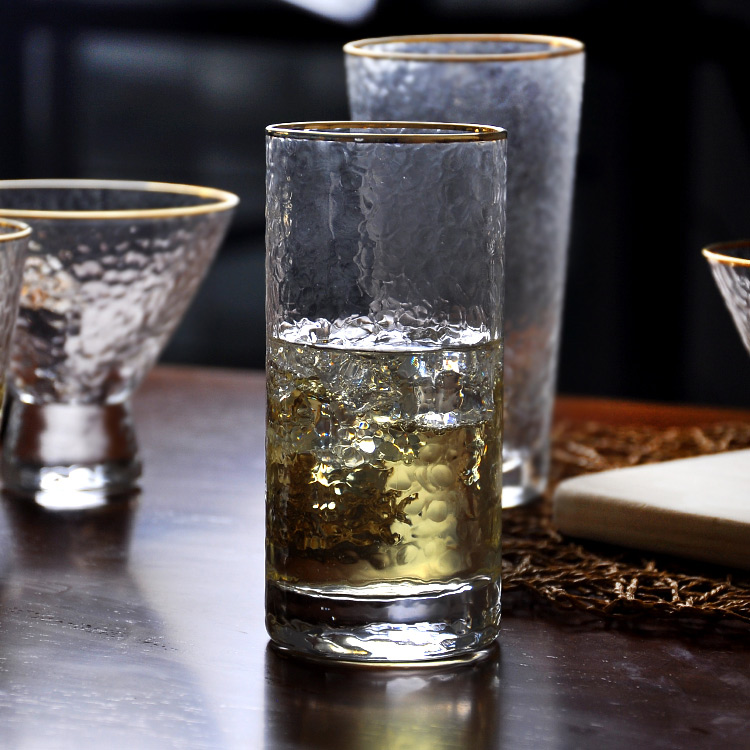 Full gold rimmed frosted hammerhead pattern drinking glass cup set includes:red wine glasses, white wine glass,champagne glasses,champagne coupe,martini glass,tumbler glass,water glasses etc.