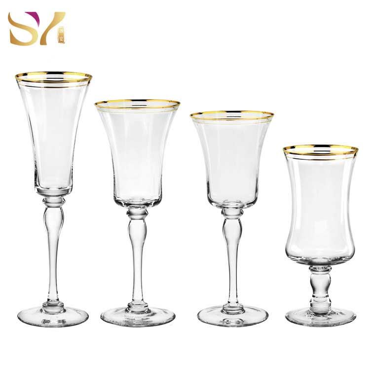 Full gold rim tulip bucket bowl glass wine glasses set includes:red wine glasses,white wine glass,coupette glass,champagne glasses,stemless wine glasses,long/short stem wine glasses etc.