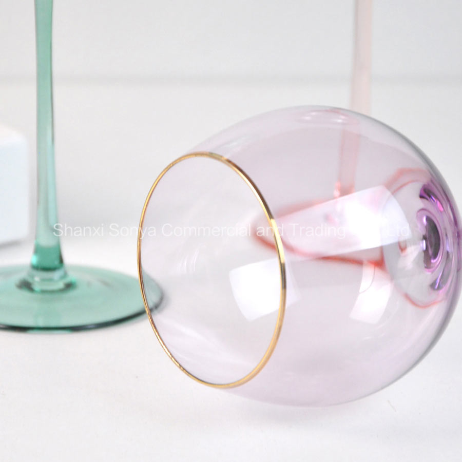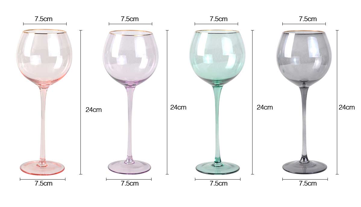 Colored red wine glass goblet customize, we can customize the logo, color, handle color/length, wine glass diameter, base width, etc. You can provide the size data of the wine glass you want, and we will produce it according to the data you provide.